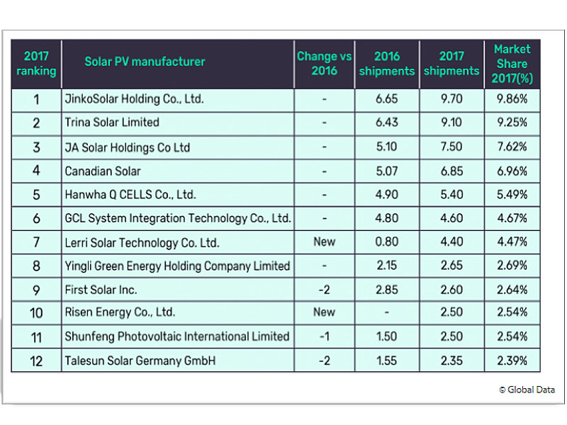 Ami a 2016, valamint 2017-es évet illeti, legtöbb leszállított napelemmel az alábbi gyártók rendelkeznek.